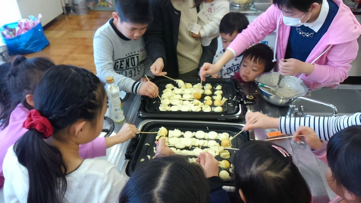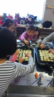 午前中は、ホットケーキミックスをタコ焼き器で焼いて、ケーキの土台の準備。