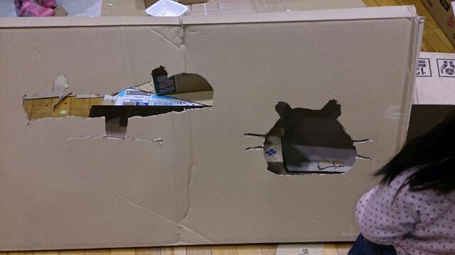 細かにガムテープを貼り付けて、丁寧な仕事してますよ。