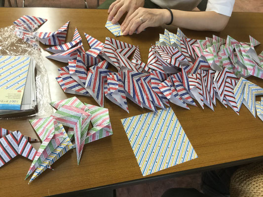 今年はスター☆で飾り付けします。折り紙でつくる☆を準備中。