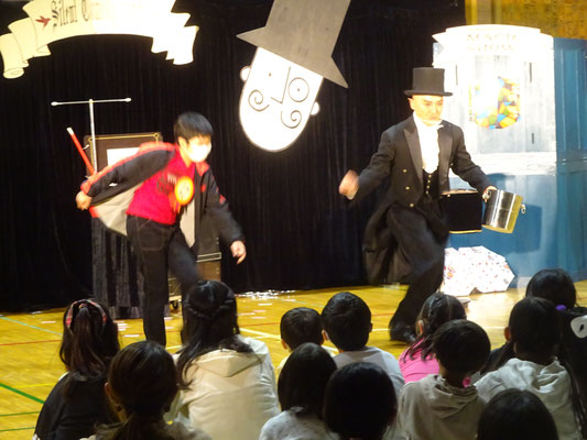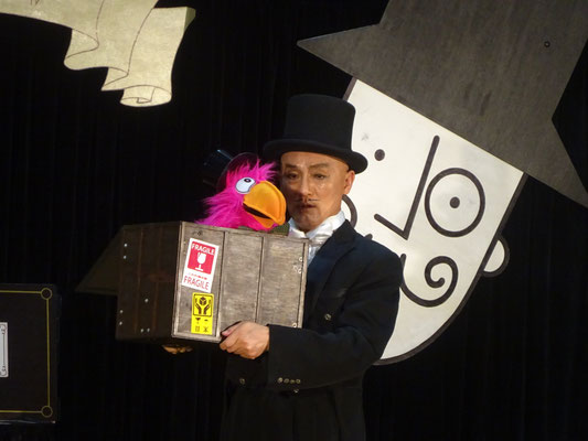 本編は・・・喋らないぶん、一つ一つの動きや表情を見逃さないように、マジックがどうなっているのかと目を凝 らして、気づけば身を乗り出し、じりじりと前のほうに動いていってしまう・・・大人も子供もジンマサフスキーさん のマジックと笑いの世界にぐいぐい引き込まれた時間でした。あの口から何個も出てくるピンポン玉・・・ほんとに 謎です。プロのマジックの技をこんなに間近に見る事ができてうれしかったです!また、ソーシャルディスタンスや消 毒でさえもネタにして笑いに変えてしまうのはさすがでした♪見ている途中で気づいたのですが、喋らずにパフォー マンスをするこの演目は、今のコロナ禍にとってもマッチしているなと感じました♪