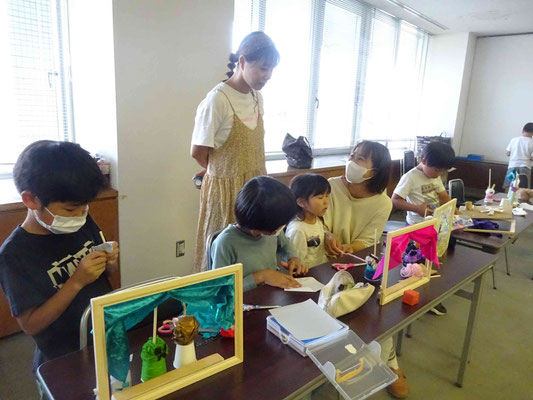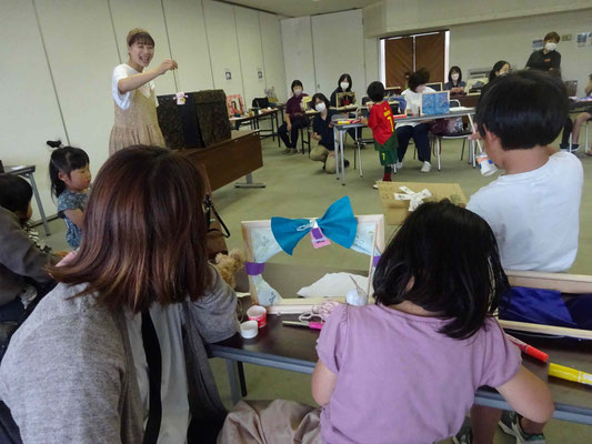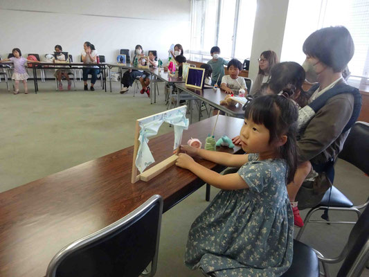 2023/05/28 「おしいれのぼうけん」事後交流会 「おしいれのぼうけん」を観た後、午後は松本美里さんと表現ワークショップ。 事前活動で作った舞台を持ち寄りました。 材料選んで人形作り。いろんな人形が出来ました。その後小さなお話を作って発表! ちょっと恥ずかしい人も松本さんと一緒に、作った人形を見せてくれました。 額縁人形劇を観た後なので子どもたちの想像力も膨らんだ充実の時間でした。 tagPlaceholderカテゴリ: スタッフ日記 コメントをお書きください コメント: 0