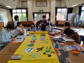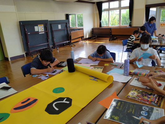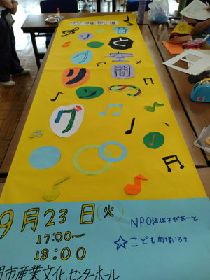 スタッフ日記 · 2025/08/22 看板作ったよ~! ミルキーウェイとぴっぴ、二つのサークルが集まって、9月23日(火・祝)の鑑賞会「音と空間のジャグリング」の看板を作りました。一人一文字ずつ選んで、思い思いの色や形でかきました。 ダイナミックな文字、定規を使ってかいた文字…それぞれの個性あふれる文字を大きな紙に貼ってできあがり!おしゃべりをしながら作って楽しかったですね。当日が楽しみになりました! tagPlaceholderカテゴリ: スタッフ日記, みる