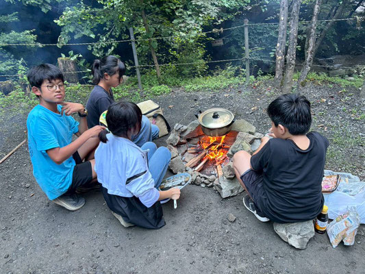 川遊びや、つかみ取りした魚を焼いて食べたり、ナイトウォーク、キャンプファイヤーなど、普段なかなかできない体験をしてきました。