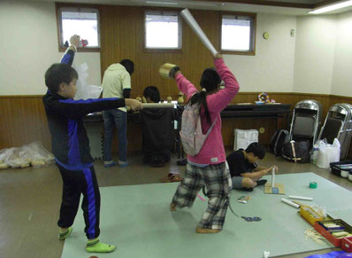 4年生の2人が、小学校の運動会で踊るエイサーを披露してくれました。手作りタイコを作って、動きも解説付きで、校庭で踊る姿が浮かんできて、観に行きたくなりました。
